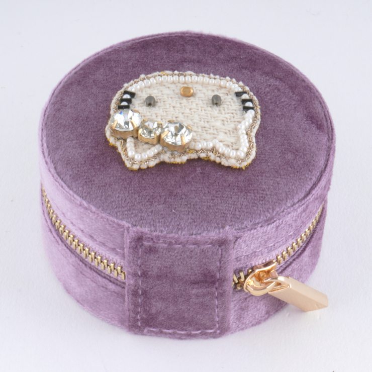 | 素材 | ボックス:ベルベット(ポリエステル)、モチーフ:シフォン・真鍮にコーティング・ガラスストーン・ガラスビーズ・ポリエステル |