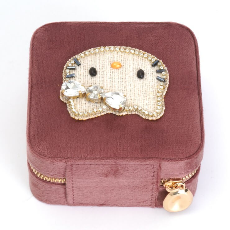| 素材 | ボックス:ベルベット(ポリエステル)、モチーフ:シフォン・真鍮にコーティング・ガラスストーン・ガラスビーズ・ポリエステル |