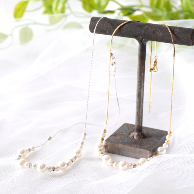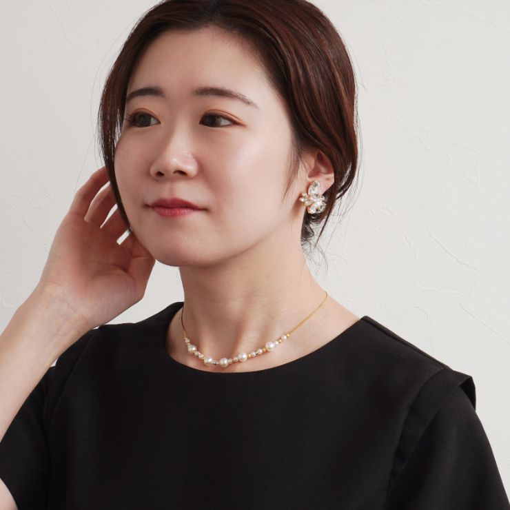 | 素材 | ベース:合金・真鍮メッキ加工 / アクリルパール / ガラスストーン |