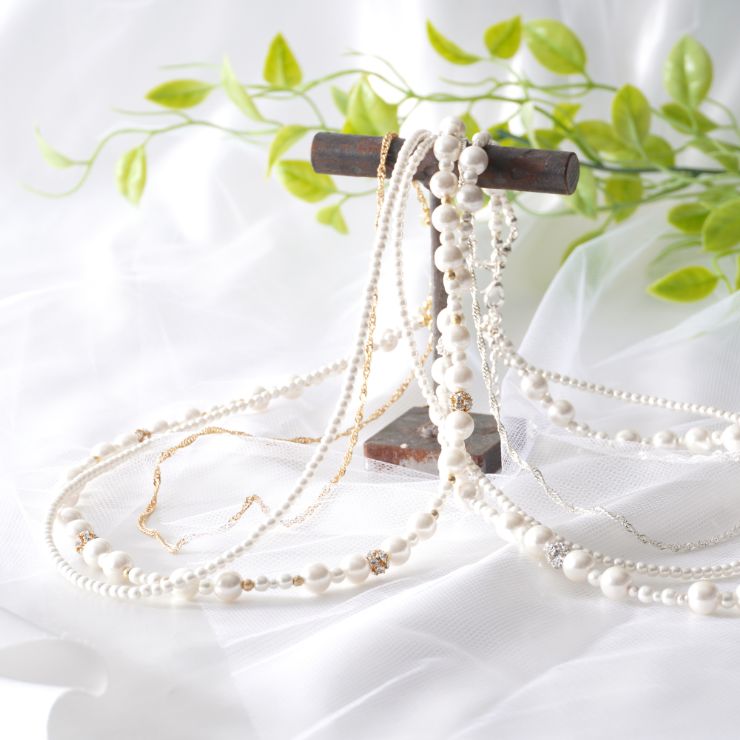 | 素材 | ベース:合金・真鍮メッキ加工 / アクリルパール / ガラスストーン |